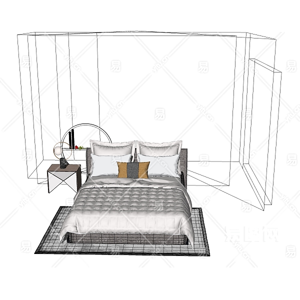 当前的位置:首页 > sketchup > sketchup模型 > 床具 > 双人床 > 简欧卧室双人床组合