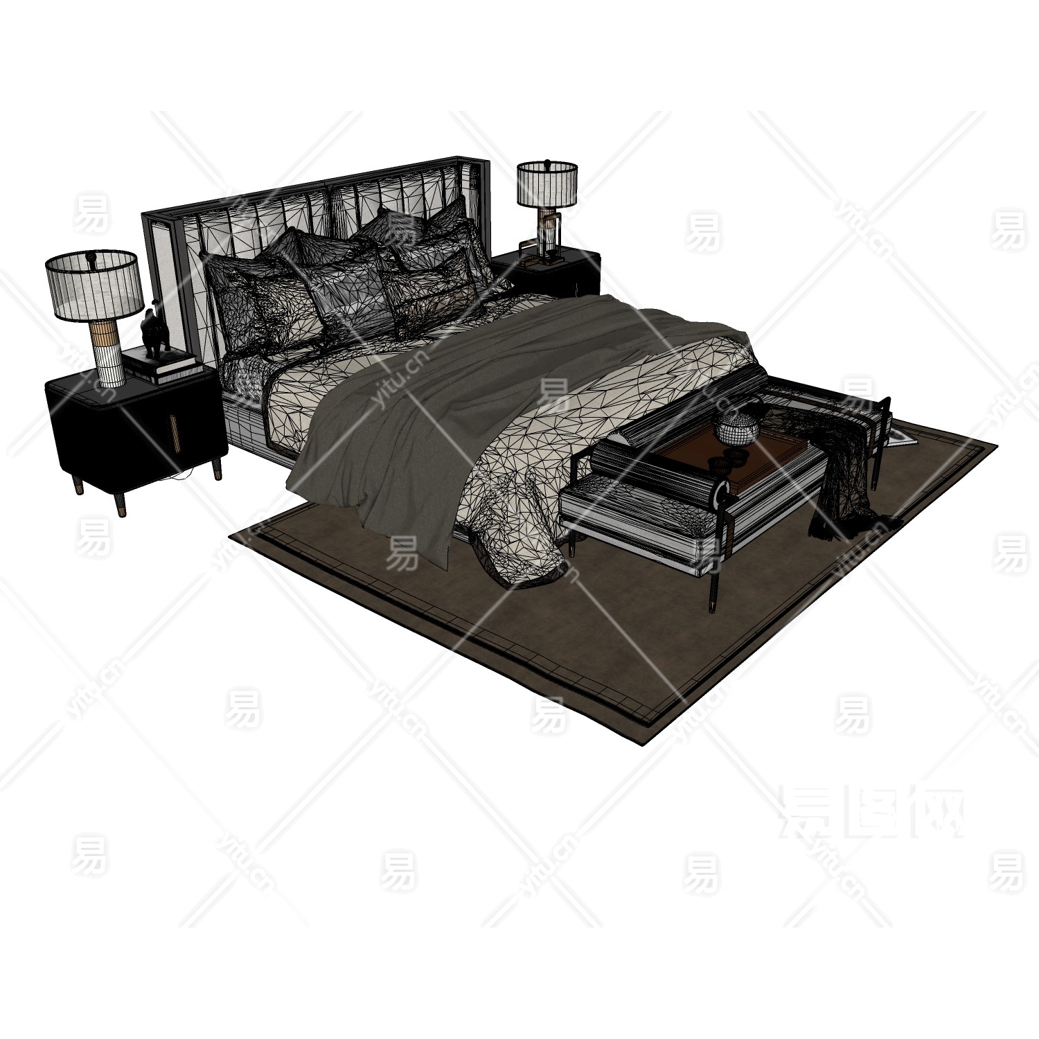 当前的位置:首页 > sketchup > sketchup模型 > 床具 > 双人床 > 新中式风格双人床床具床头柜组合