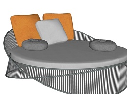 现代布艺圆形双人床su模型