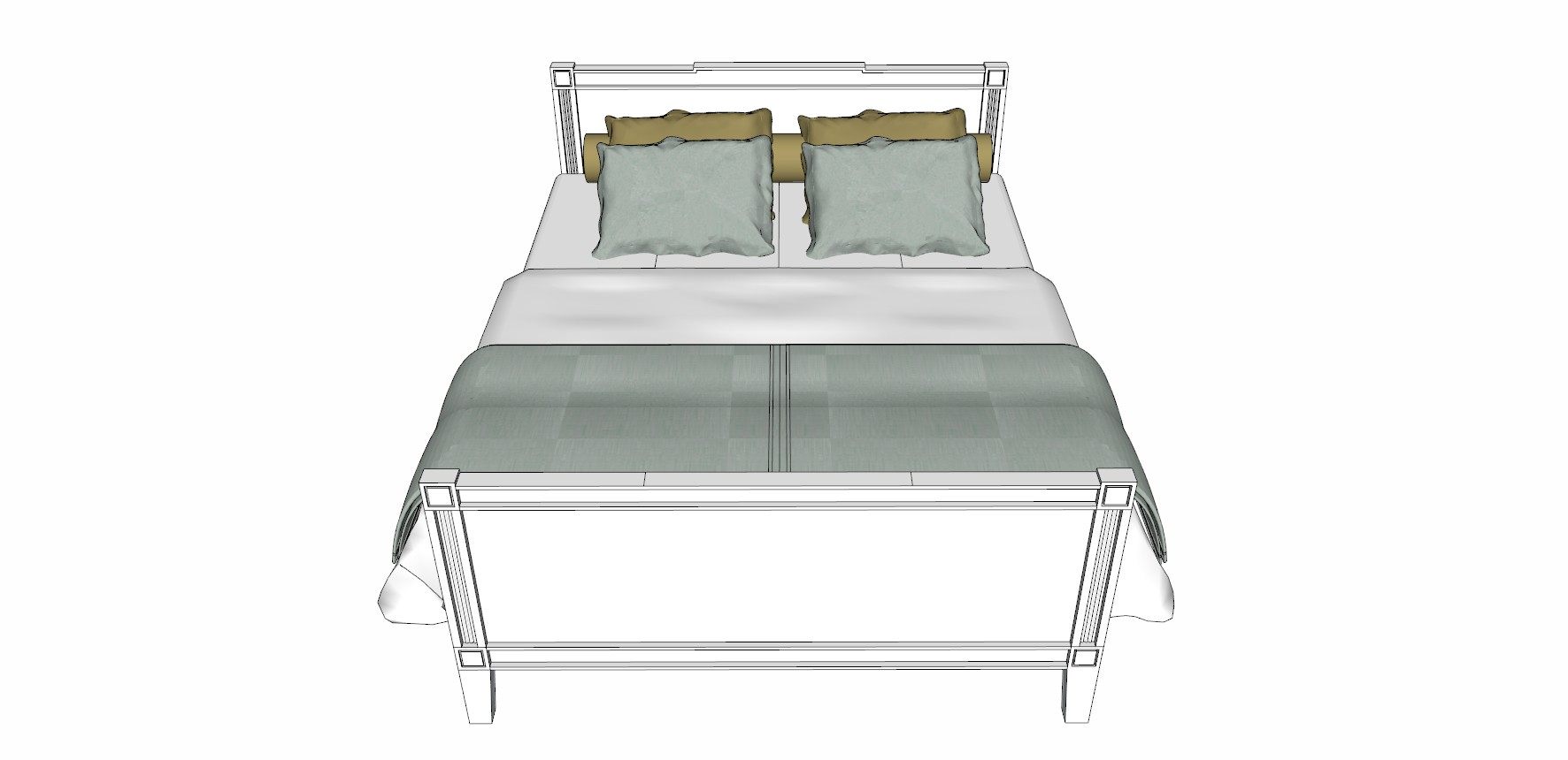现代极简风格双人床的草图模型,双人床草图大师模型下载