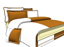现代双人床su模型