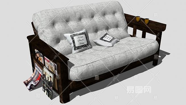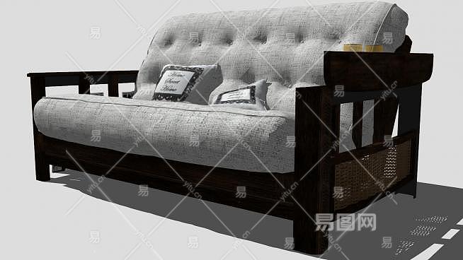 欧式木沙发带垫子SU模型下载_sketchup草图大师SKP模型