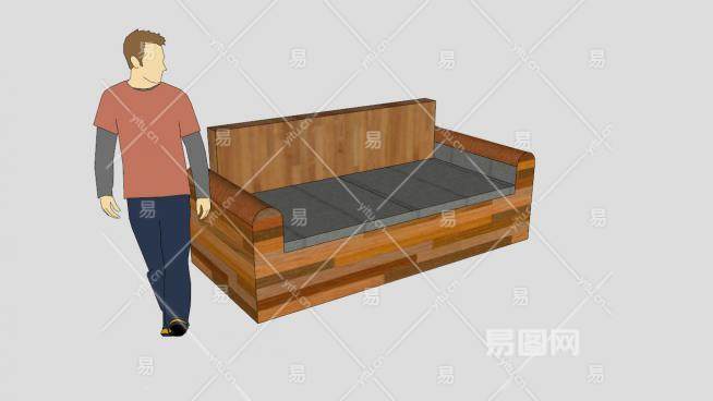 实木沙发木质双人沙发SU模型下载_sketchup草图大师SKP模型
