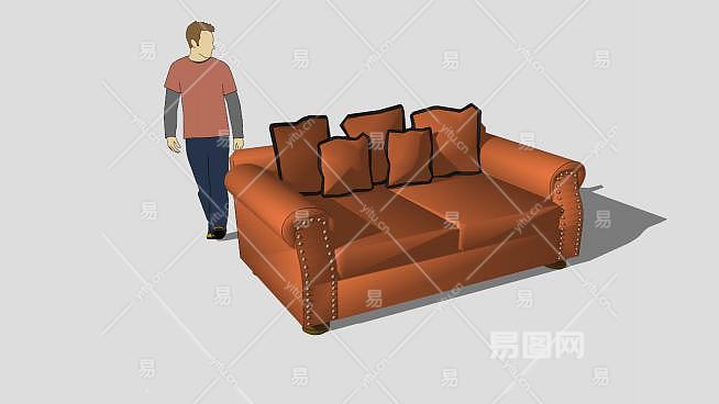 西方橘色沙发双人沙发SU模型下载_sketchup草图大师SKP模型