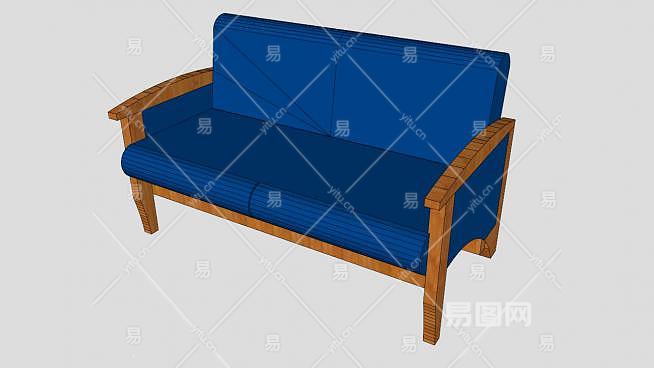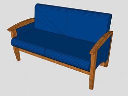 实木沙发蓝色康芒斯双人沙发SU模型下载_sketchup草图大师SKP模型