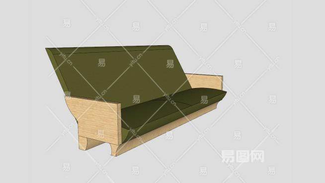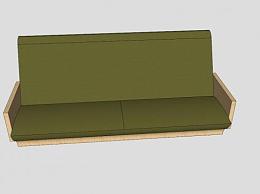 实木沙发双人沙发绿色坐垫沙发SU模型下载_sketchup草图大师SKP模型