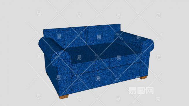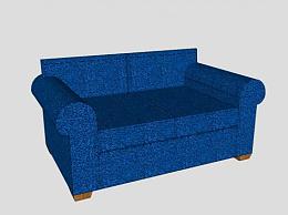 蓝色休闲双人沙发木腿SU模型下载_sketchup草图大师SKP模型