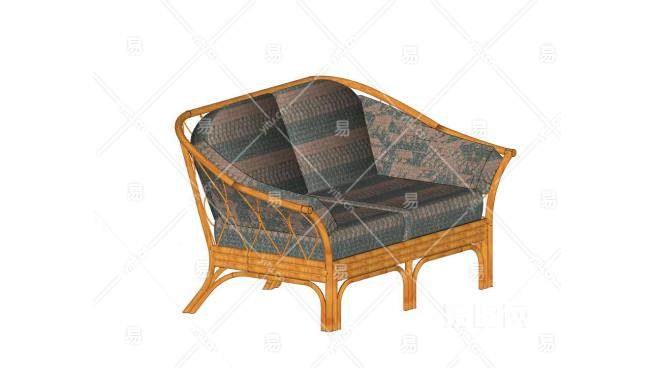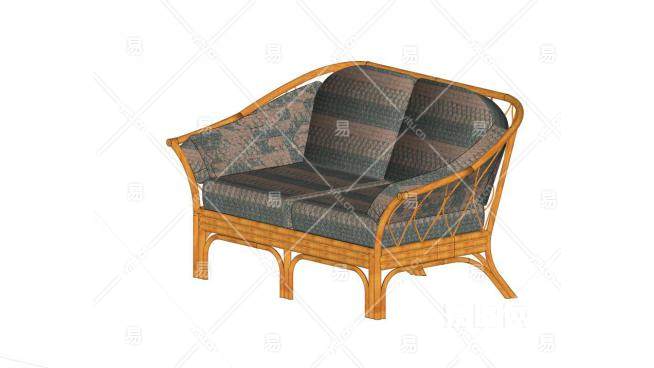 藤竹双人沙发休闲沙发SU模型下载_sketchup草图大师SKP模型