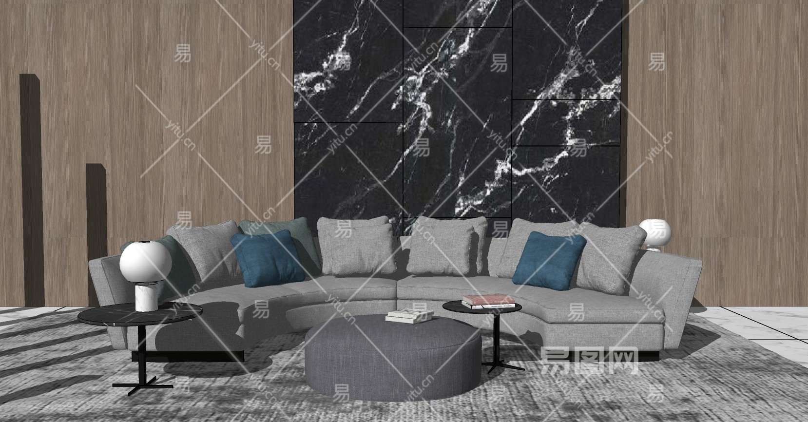 20现代弧形半圆形沙发茶几圆墩边几su草图模型下载