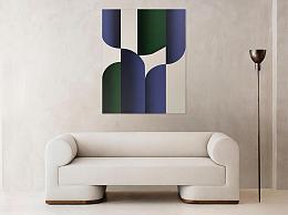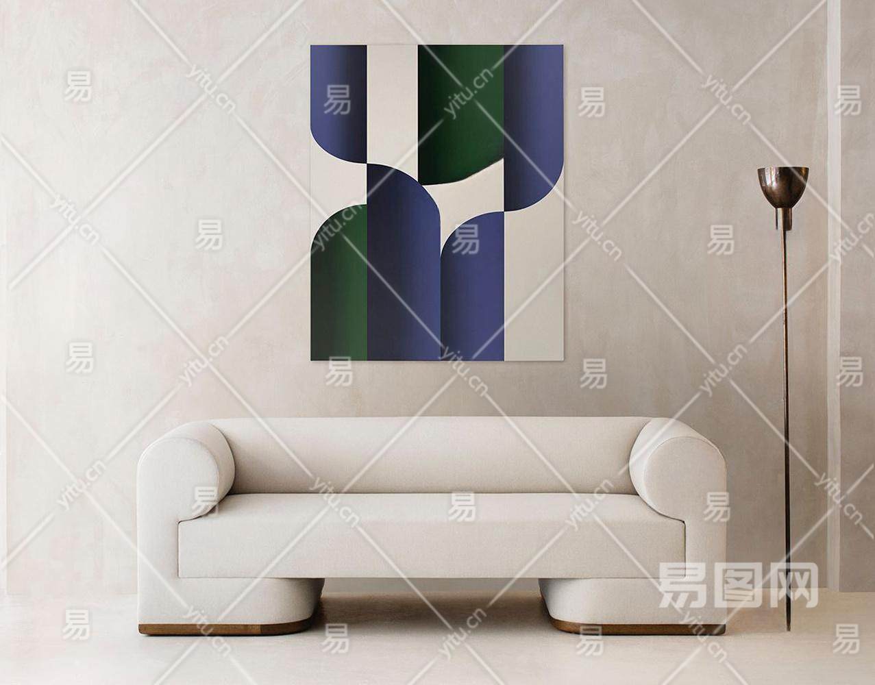 现代双人沙发 卡位沙发 装饰画 落地灯 家具组合