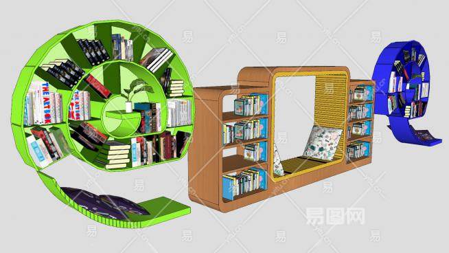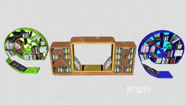 特色书架书柜SU模型下载_sketchup草图大师SKP模型