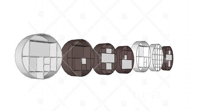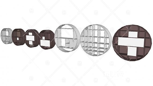 圆形书架柜子SU模型下载_sketchup草图大师SKP模型