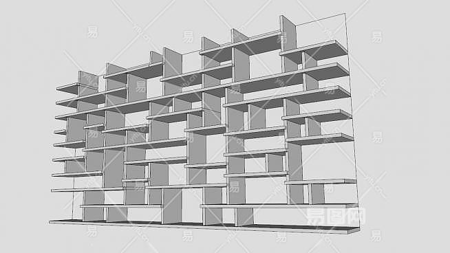 图书馆白色书柜SU模型下载_sketchup草图大师SKP模型