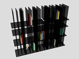 黑色隔板式书架SU模型下载_sketchup草图大师SKP模型