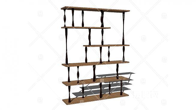 钢木倚墙式书柜SU模型下载_sketchup草图大师SKP模型