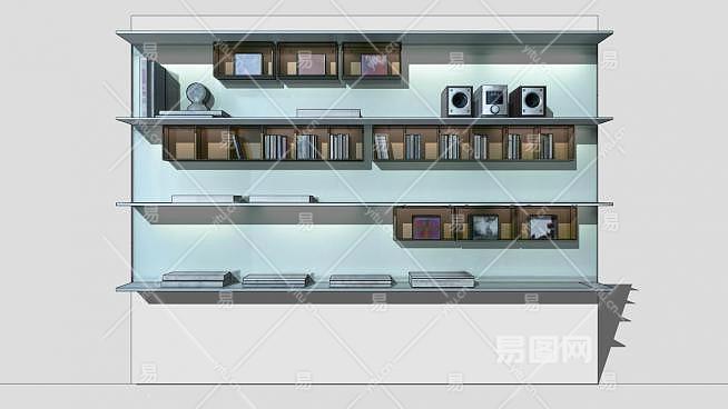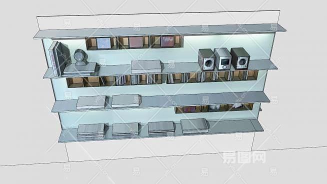 现代玻璃书柜书架SU模型下载_sketchup草图大师SKP模型
