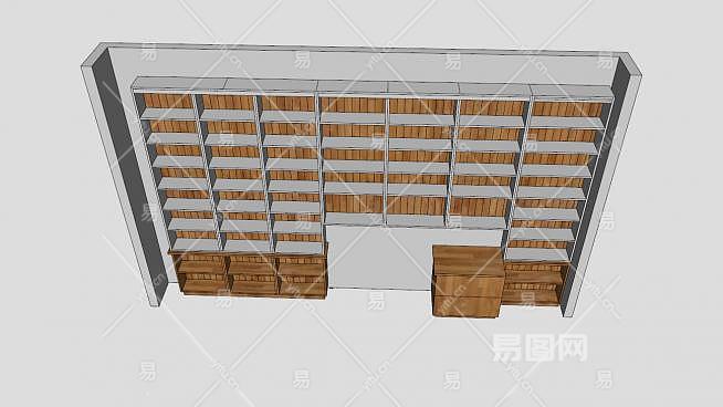 钢木结合书柜SU模型下载_sketchup草图大师SKP模型