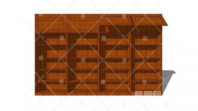 实木单式书柜SU模型下载_sketchup草图大师SKP模型