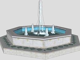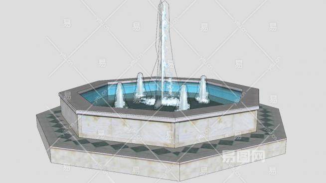 现代八角瓷砖喷泉SU模型下载_sketchup草图大师SKP模型