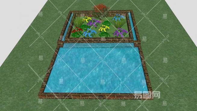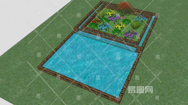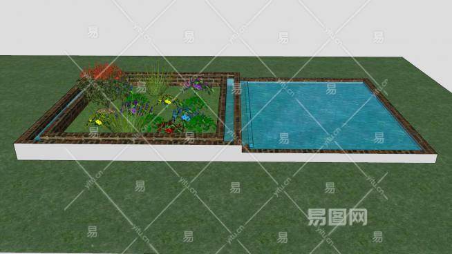 庭院花圃观景水池SU模型下载_sketchup草图大师SKP模型