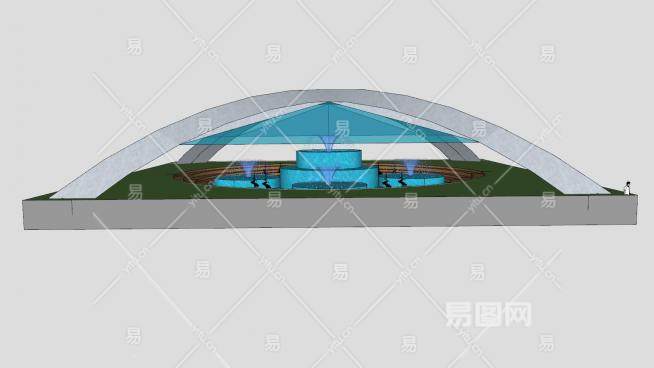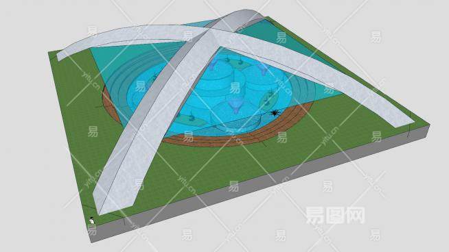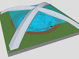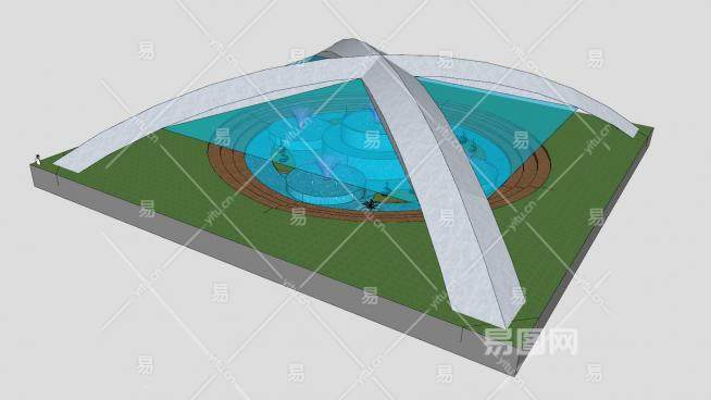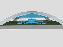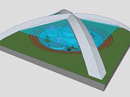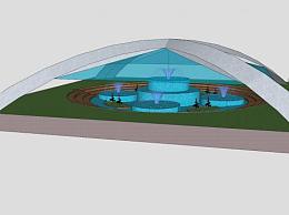 现代雨棚大喷泉水景建筑SU模型下载_sketchup草图大师SKP模型