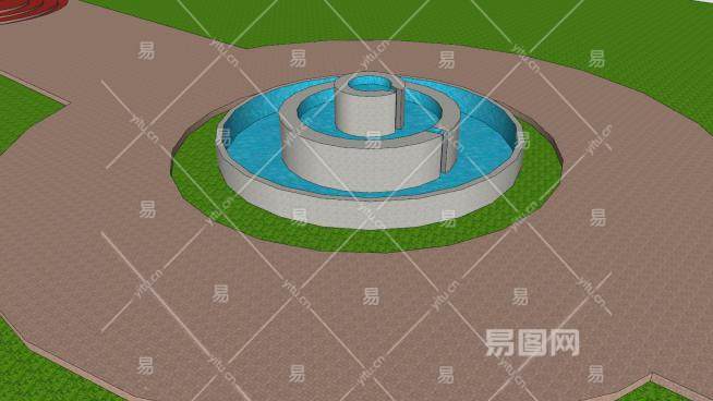 别墅流水喷泉SU模型下载_sketchup草图大师SKP模型