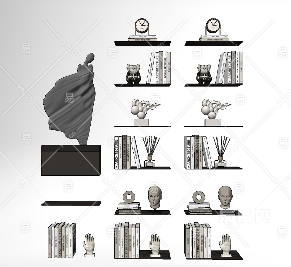 现代雕塑摆件现代抽象雕塑、书、熏香、公仔摆件 (1)su草图模型下载