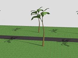 道路上的摩托车和树SU模型下载_sketchup草图大师SKP模型