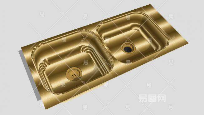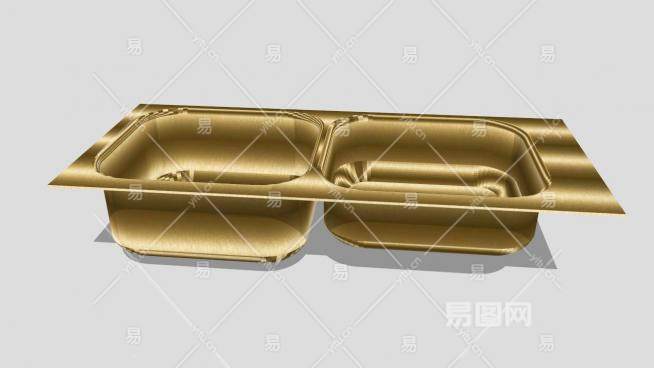 黄铜双水槽SU模型下载_sketchup草图大师SKP模型