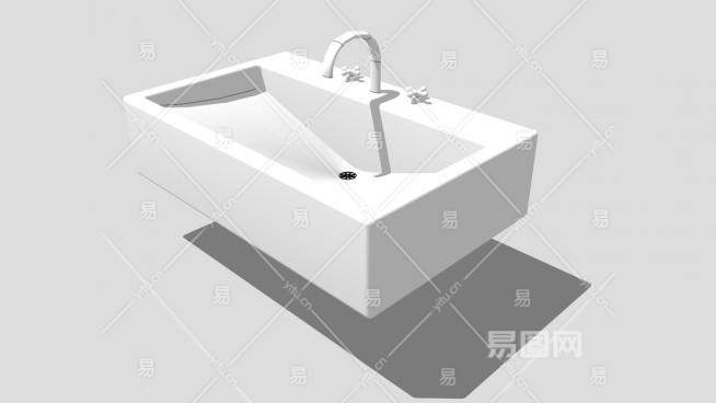 水龙头陶瓷方形洗手台盆SU模型下载_sketchup草图大师SKP模型
