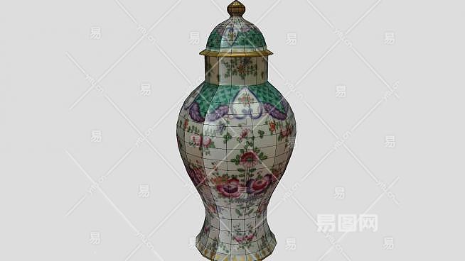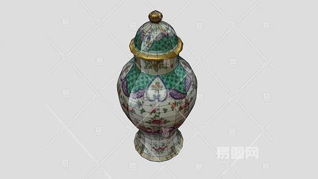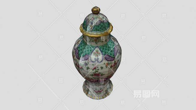 彩瓷印花瓷罐装饰瓶SU模型下载_sketchup草图大师SKP模型