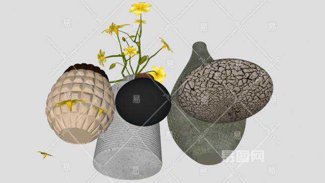 室内装饰陶瓷花瓶系列SU模型下载_sketchup草图大师SKP模型