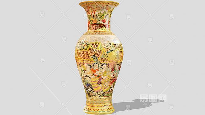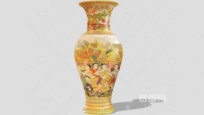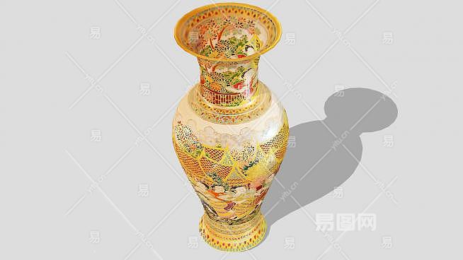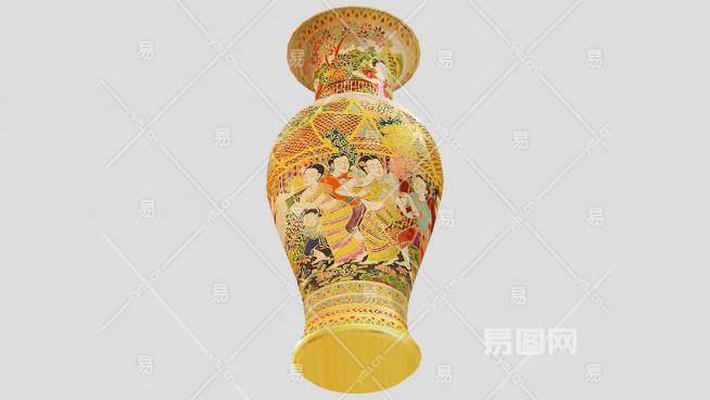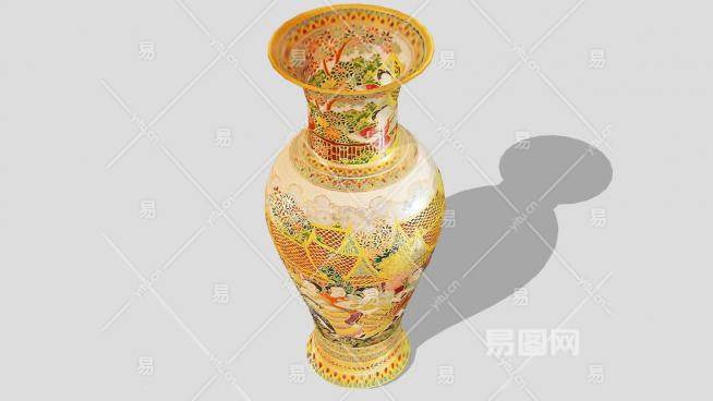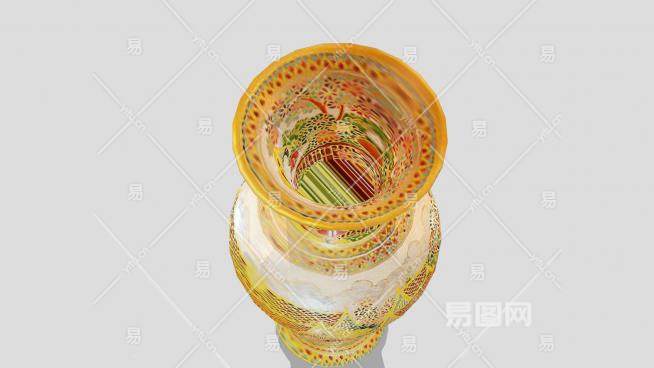 泰国风格彩瓷花瓶SU模型下载_sketchup草图大师SKP模型