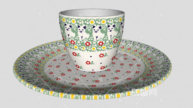 现代动物花纹瓷杯SU模型下载_sketchup草图大师SKP模型