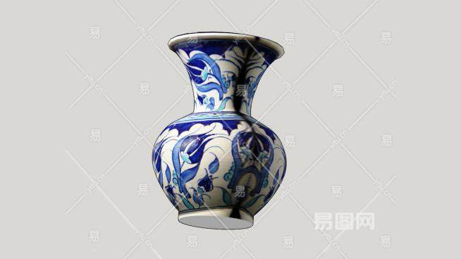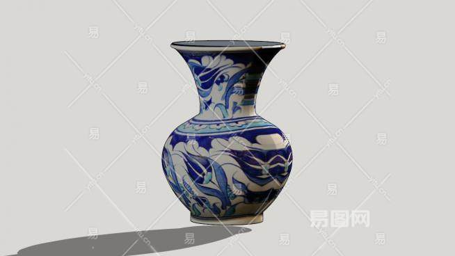 绣花陶瓷花瓶SU模型下载_sketchup草图大师SKP模型
