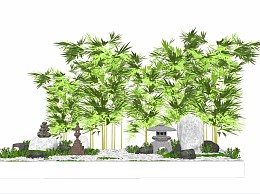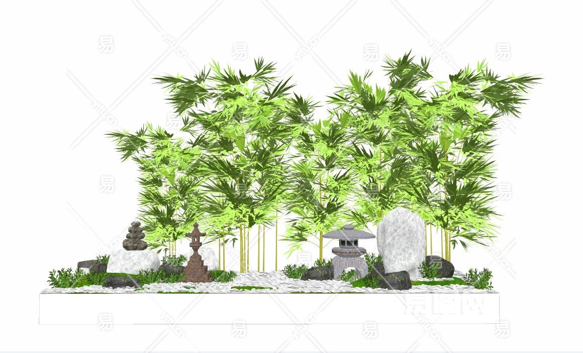日式庭院景观枯山水石灯假山景观石塔灯卵石3d植物竹子
