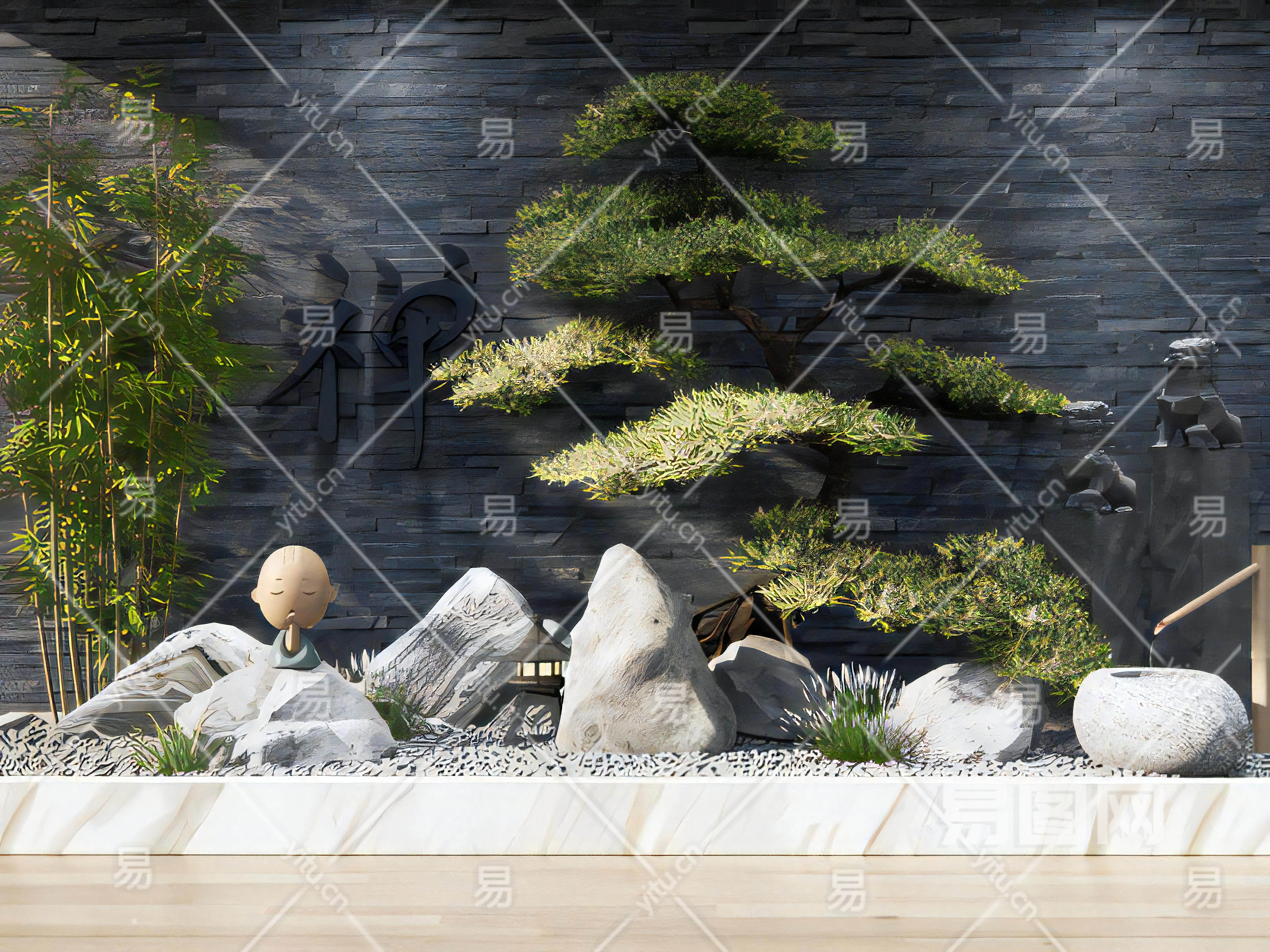 新中式枯山水景观小品