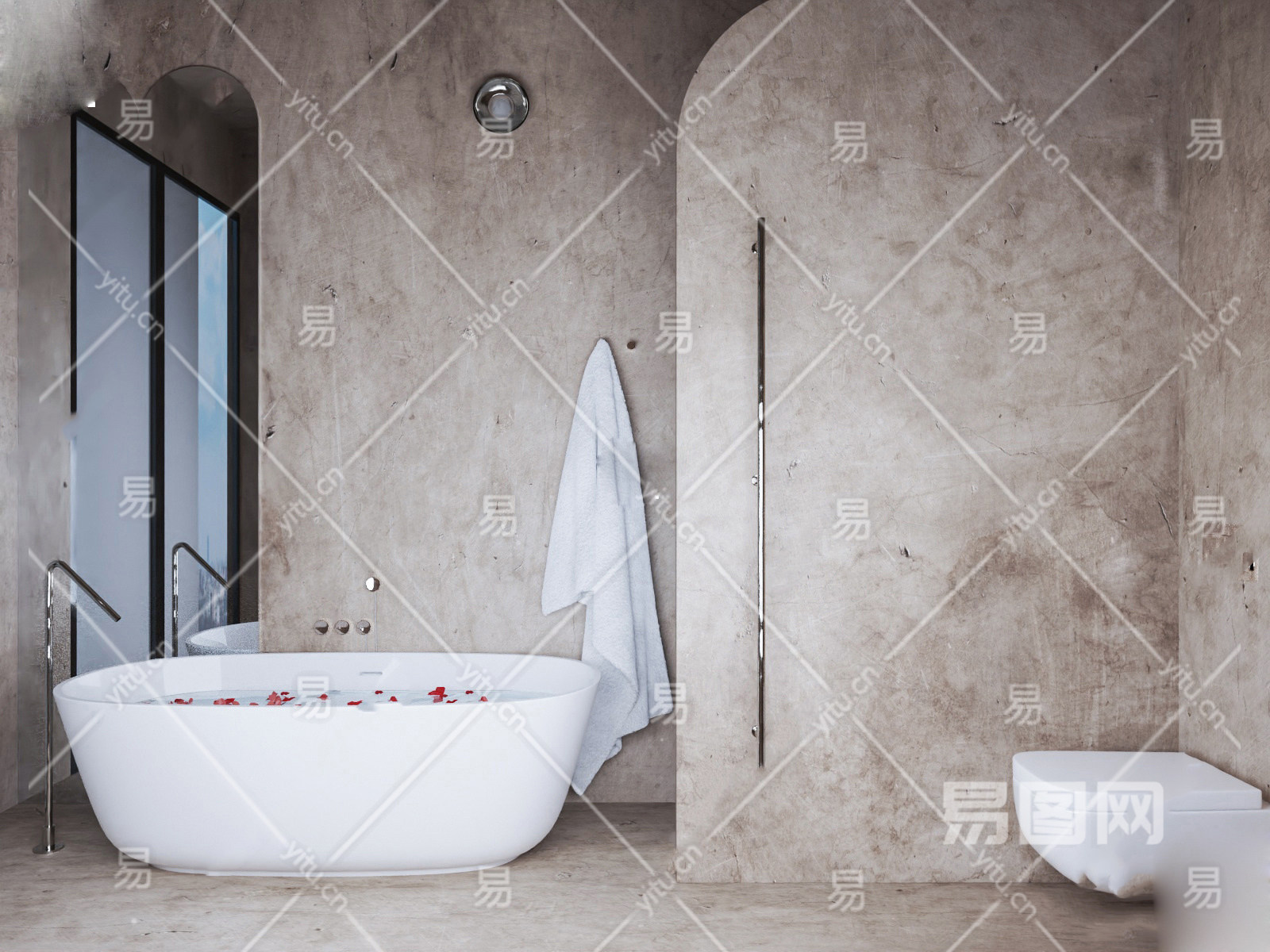 现代侘寂卫生间 卫浴 浴缸 水龙头 淋浴间 浴室 洗手台 马桶 台盆
