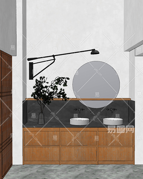 日式卫生间浴室柜组合,卫浴柜,su草图模型下载