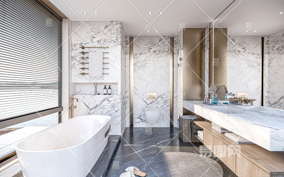 现代卫生间 卫浴用品 喷淋 花洒 台盆 马桶 洗手台 洗浴间 镜子