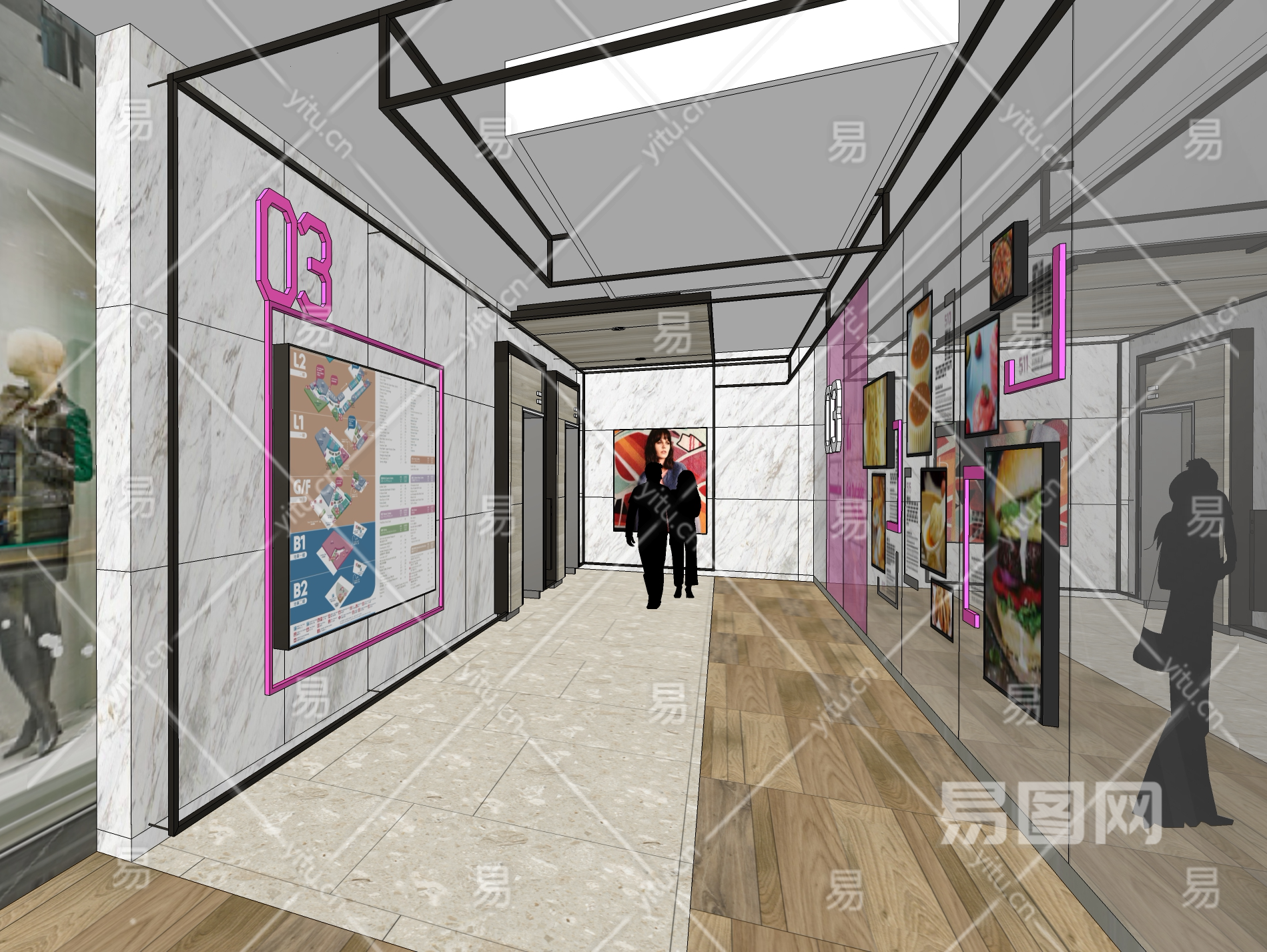 现代商场电梯厅过道SU模型下载