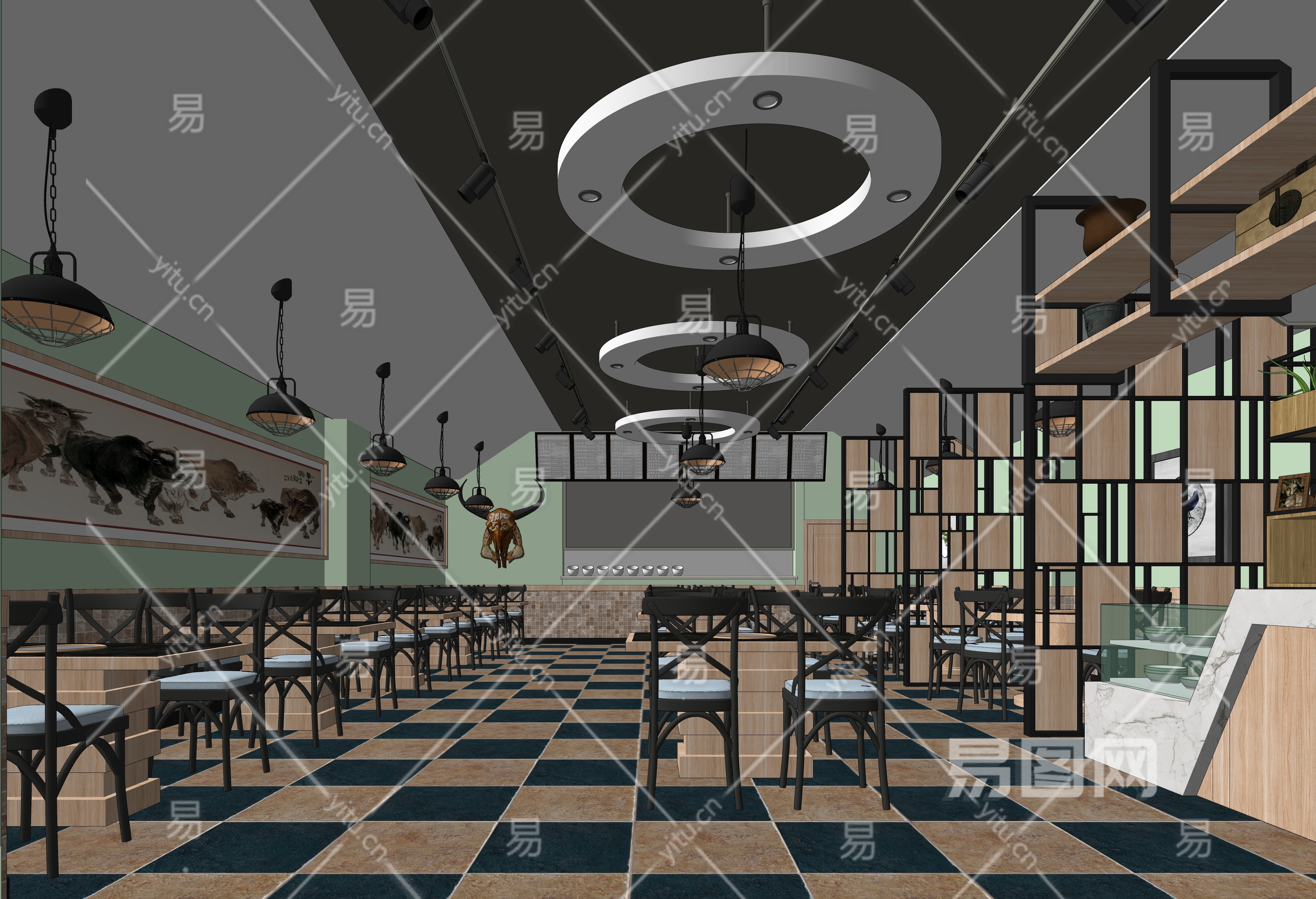 现代火锅店SU模型下载