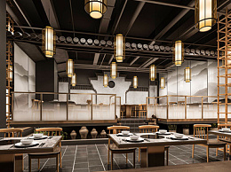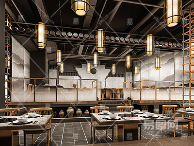 新中式火锅店SU模型下载