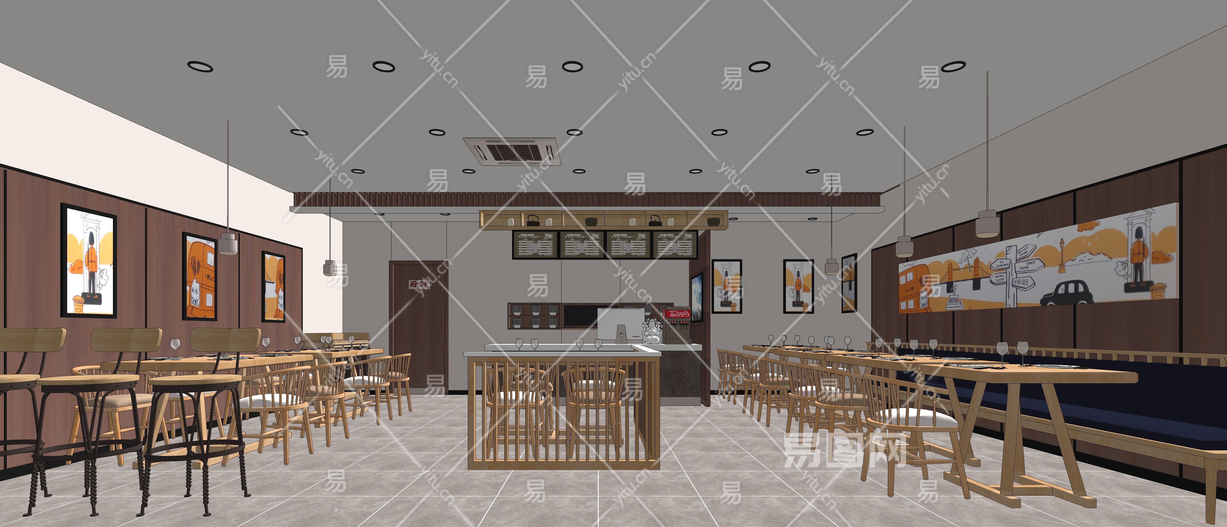 现代快餐店SU模型下载