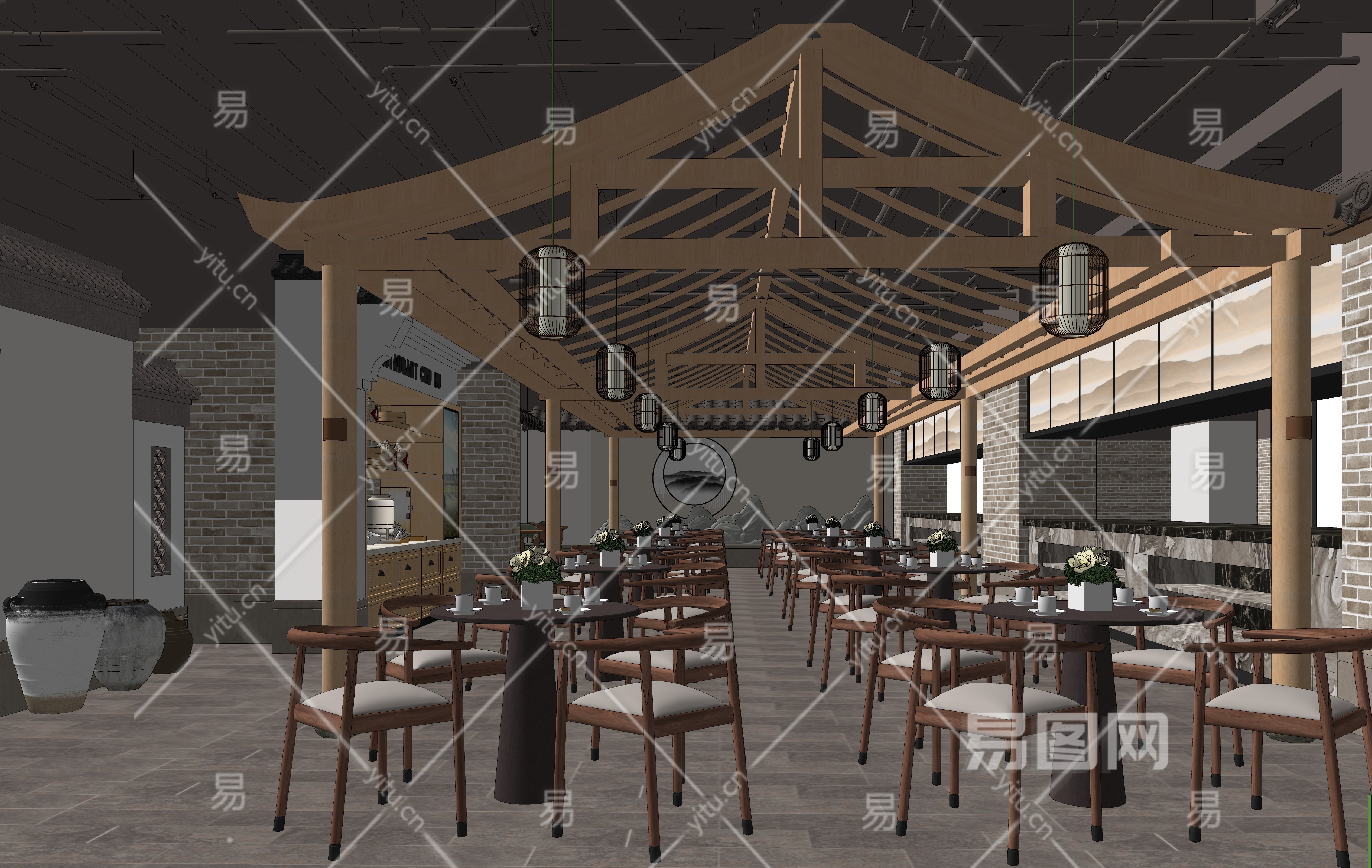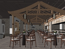新中式餐厅SU模型下载