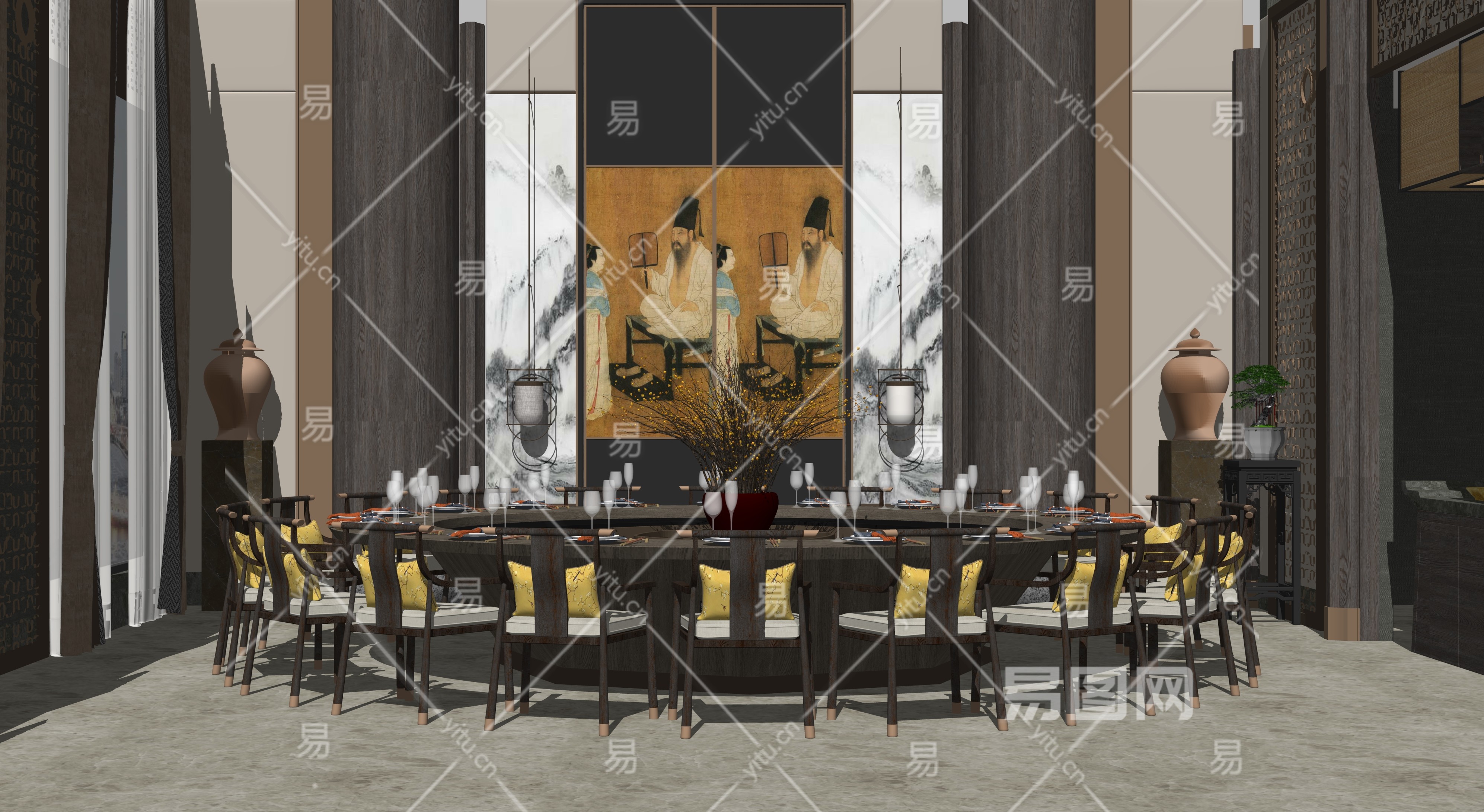 新中式包厢SU模型下载