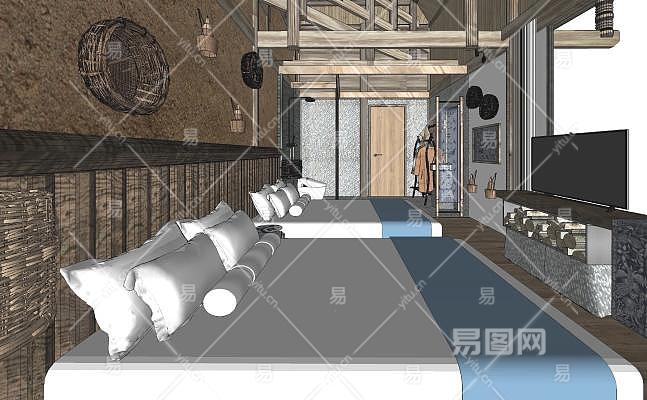 现代风格酒店客房SU模型下载