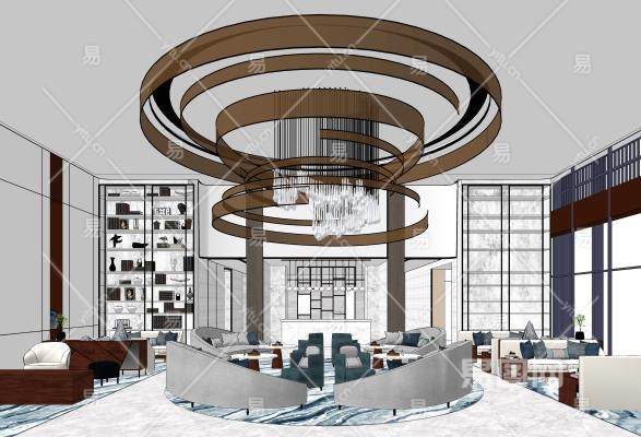 现代售楼处洽谈区空间SU模型下载