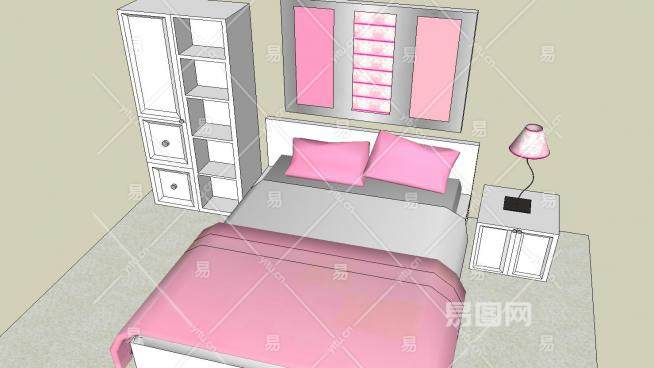 粉色卧室套房装修SU模型下载_sketchup草图大师SKP模型