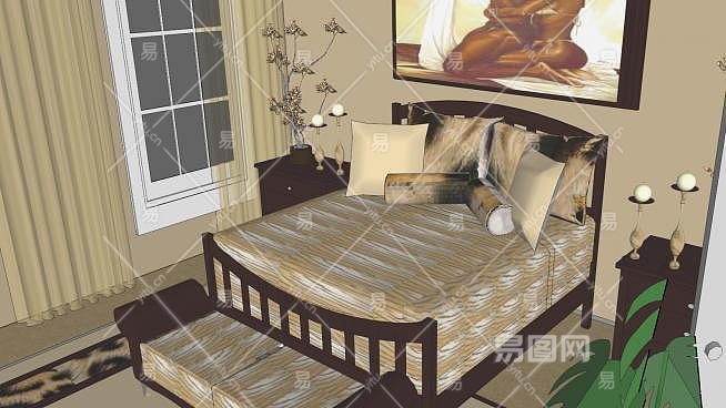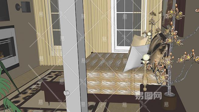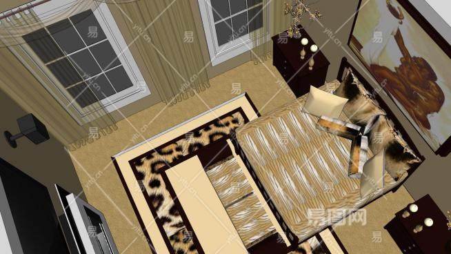 欧式风格卧室SU模型下载_sketchup草图大师SKP模型